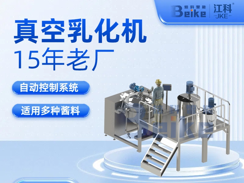 食品醬料油水乳化專用JPS真空乳化機是一種用于食品醬料生產(chǎn)中,實現(xiàn)油水乳化并防止油水分離的設備。以下是其相關(guān)介紹:工作原理· JPS真空乳化機通過乳化頭的高速旋轉(zhuǎn)來切割、分散和沖擊物料。物料在真空的狀態(tài)下,利用高剪切乳化器快速均勻